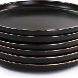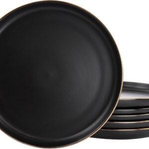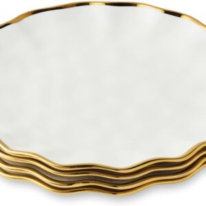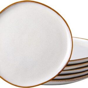 10 Inch Gold – Trimmed White Ceramic Large – Size Appetizer & Dessert Plates Set of 6 with Glass – like Finish | Great for Hearty Meals and Larger Servings