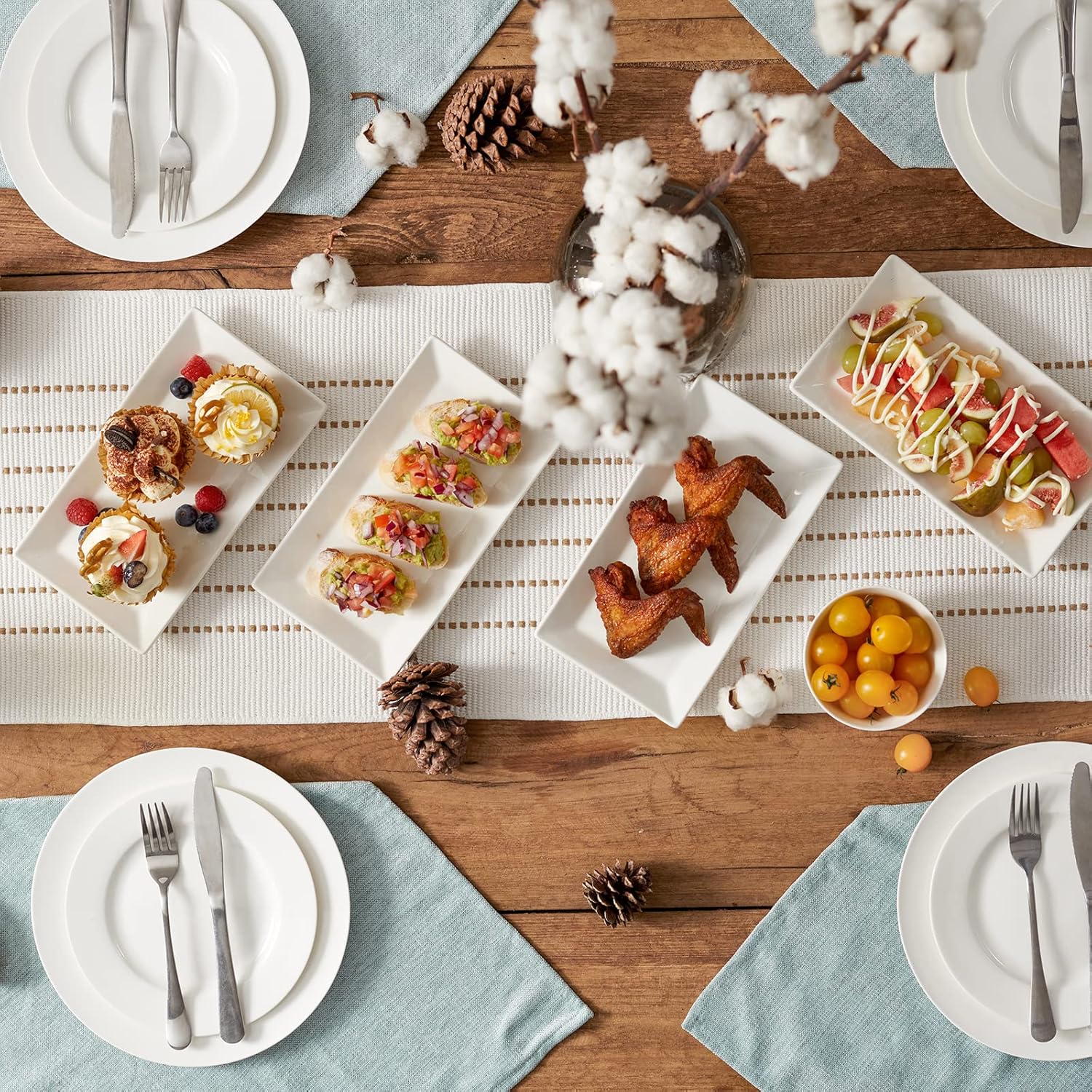 No-Spilling Design – This rectangle plates is designed with an ergonomic rectangle shape and a narrow rim. The rim expertly frames each dish and helps prevent messes or spills by keeping foods and sauces contained on the white serving platters.