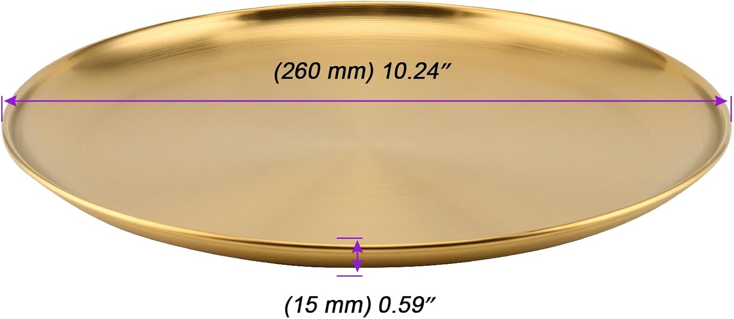 • WIDE APPLICATION – Our round stainless steel serving tray is simple and elegant. Suitable for household or commercial use. It’s perfect for serving delicious dishes, pasta, pancakes, fruits, snacks, etc. You can use them almost anywhere indoors or outdoors.
