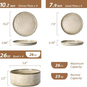 • 【WHAT YOU WILL RECEIVE】 This 12-piece dinnerware set includes 4 x 10.5-inch dinner plates, 4 x 8.25-inch salad plates, and 4 x 24 oz cereal bowls. Ideal for small families, couples, or individuals, this set perfectly meets all your dining needs with four complete place settings.